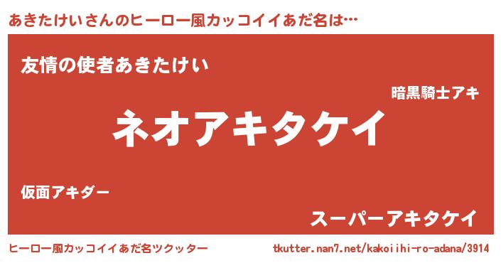 | ヘコむあだ名 | 『あきたけい(笑)』『あきもー』 |
