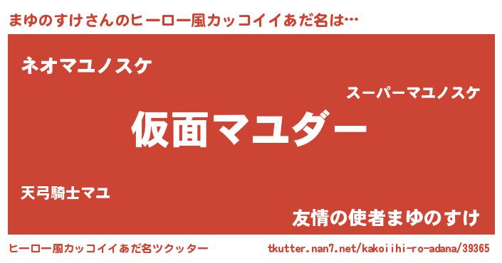 | 男性向けラノベタイトル風あだ名 | 『この素晴らしい世界にまゆのすけを!』 |