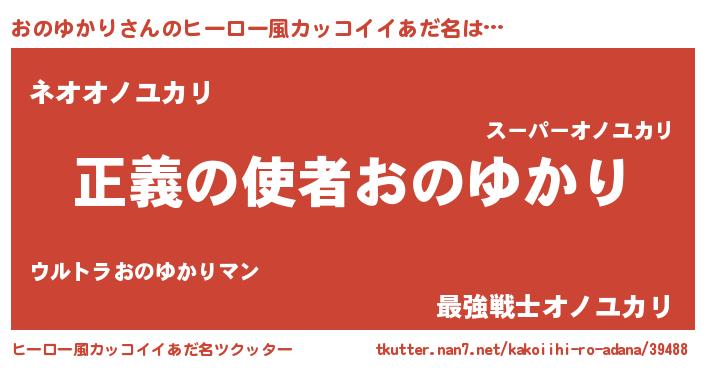| 男性向けラノベタイトル風あだ名 | 『おまえをオタクにしてやるから、俺をおのゆかりにしてくれ! 』 |