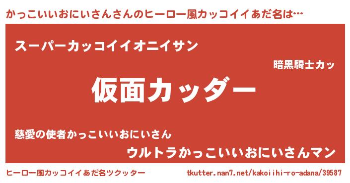 | 男性向けラノベタイトル風あだ名 | 『この素晴らしい世界にかっこいいおにいさんを!』 |