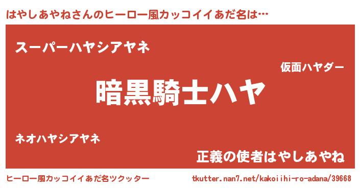 | ポケモン風あだ名 | 『ヒハヤシアヤネ』『ハヤキング』 |