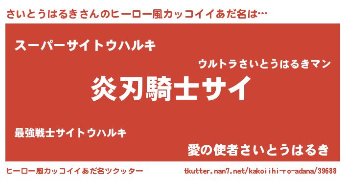 | 男性向けラノベタイトル風あだ名 | 『さいとうはるきの嫁は女の子じゃないと思った?』 |