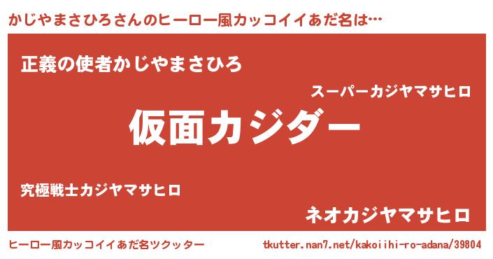 | 男性向けラノベタイトル風あだ名 | 『かじやまさひろ~年齢イコール彼女いない歴の魔法使い~』 |