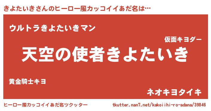| 男性向けラノベタイトル風あだ名 | 『きよたいきに滅ぼされるだけの簡単なお仕事です』 |