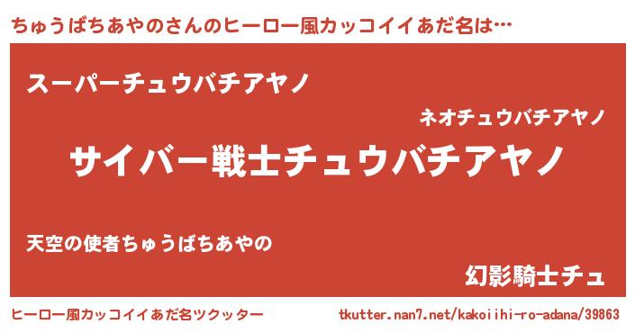 | 男性向けラノベタイトル風あだ名 | 『転生したらちゅうばちあやのだった件』 |