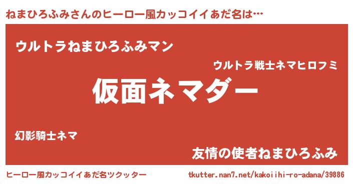| 意味不明あだ名 | 『住所不定無職ねまひろふみ(41歳)』 |