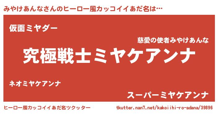 | ヘコむあだ名 | 『みやにー』『みやけあんな(遠い目)』 |
