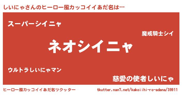 | 男性向けラノベタイトル風あだ名 | 『しいにゃという概念が存在しない退屈な世界 』 |
