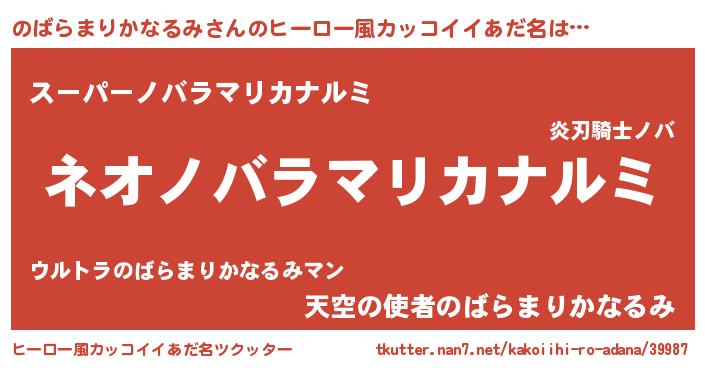 | 男性向けラノベタイトル風あだ名 | 『のばらまりかなるみという概念が存在しない退屈な世界 』 |