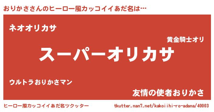 | 欧米人風あだ名 | 『マイケルおりかさ』『ダニエルおりかさ』 |