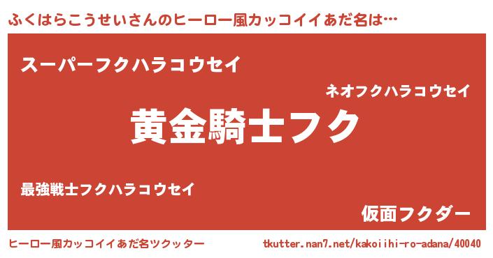 | 意味不明あだ名 | 『とにかく怪しいふくはらこうせい』 |