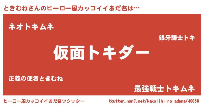 | 男性向けラノベタイトル風あだ名 | 『ときむねに滅ぼされるだけの簡単なお仕事です』 |