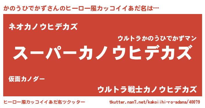 | 男性向けラノベタイトル風あだ名 | 『カノウヒデカズアートオンライン』 |