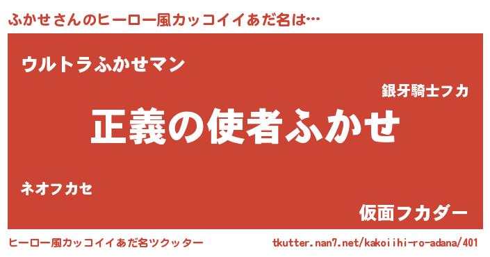 | 胡散臭い通販商品みたいなあだ名 | 『100人中100人が認めたマグネット磁石…その名も「ふかせ」』 |