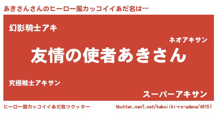 | ヘコむあだ名 | 『あき太郎』『あきもー』『豆乳』 |