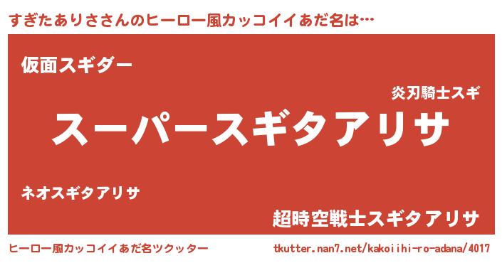 | 男性向けラノベタイトル風あだ名 | 『スギタアリサアートオンライン』 |