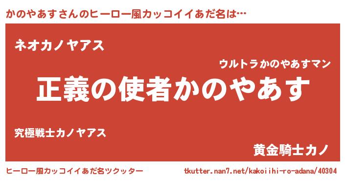 | 男性向けラノベタイトル風あだ名 | 『カノヤアススレイヤー』 |