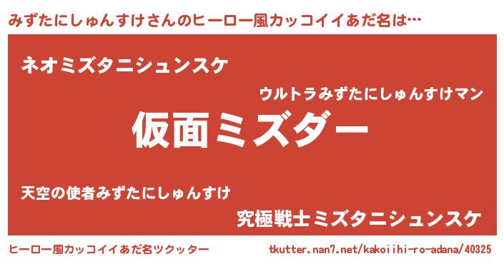 | 意味不明あだ名 | 『住所不定無職みずたにしゅんすけ(11歳)』 |