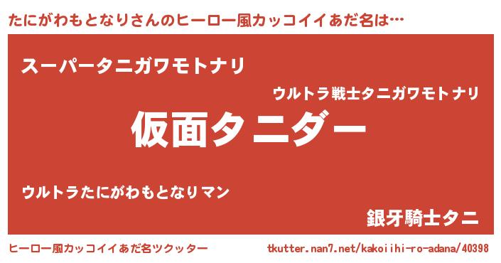 | 男性向けラノベタイトル風あだ名 | 『この素晴らしい世界にたにがわもとなりを!』 |