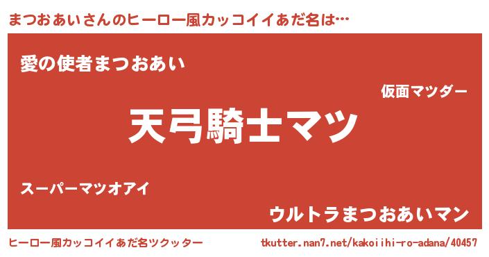 | 男性向けラノベタイトル風あだ名 | 『まつおあい~年齢イコール彼女いない歴の魔法使い~』 |