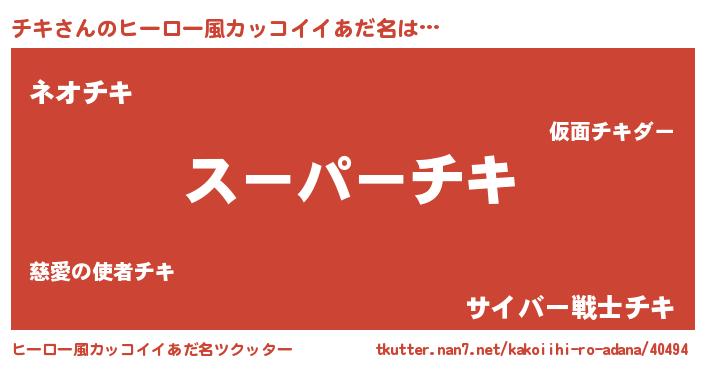 | 男性向けラノベタイトル風あだ名 | 『チキの憂鬱』『魔弾の王とチキ』 |