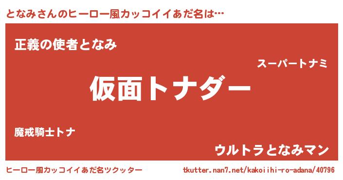 | 意味不明あだ名 | 『住所不定無職となみ(13歳)』 |