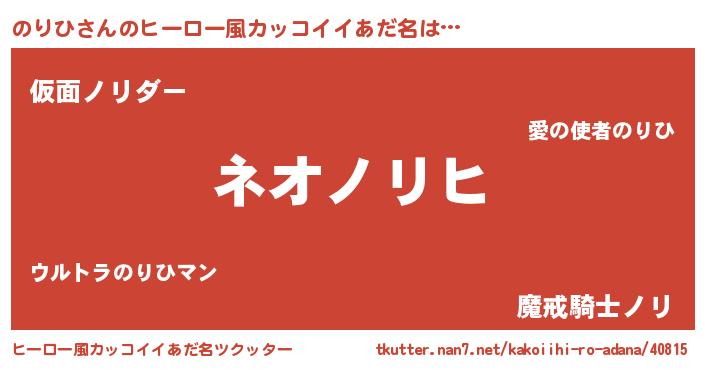 | 男性向けラノベタイトル風あだ名 | 『ノリヒスレイヤー』『魔弾の王とのりひ』 |