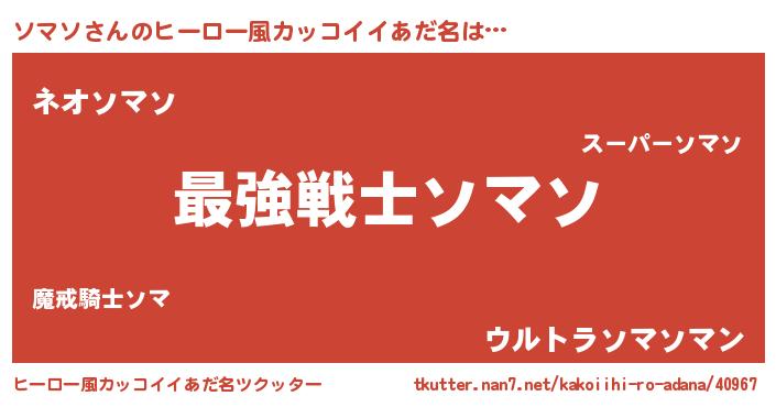 | 意味不明あだ名 | 『自称ソマソ』『永久保存ソマソ』 |