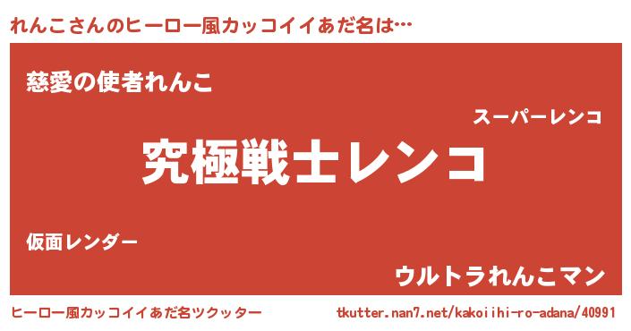| 男性向けラノベタイトル風あだ名 | 『Re:れんこから始める異世界生活』 |