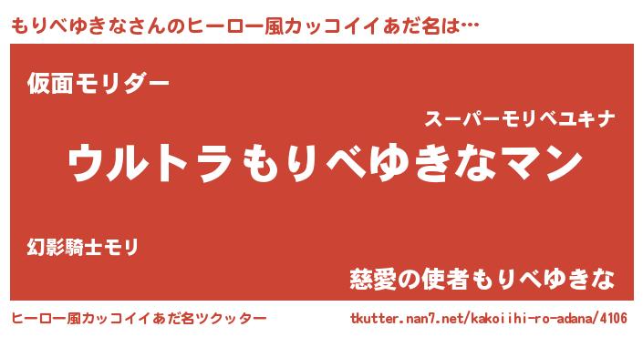 | 男性向けラノベタイトル風あだ名 | 『もりべゆきな~年齢イコール彼女いない歴の魔法使い~』 |