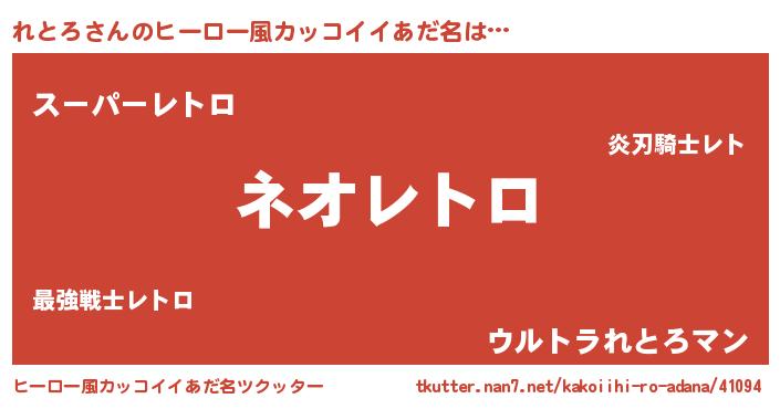 | 伝説のあだ名 | 『聞きしに勝る勇者れとろ』 |