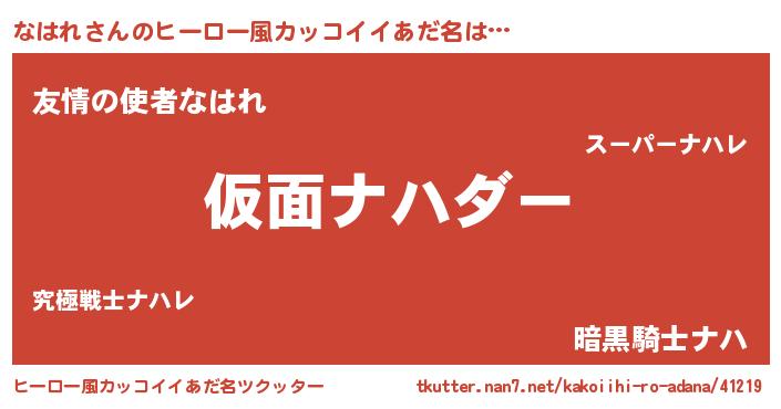 | 男性向けラノベタイトル風あだ名 | 『この素晴らしい世界になはれを!』 |