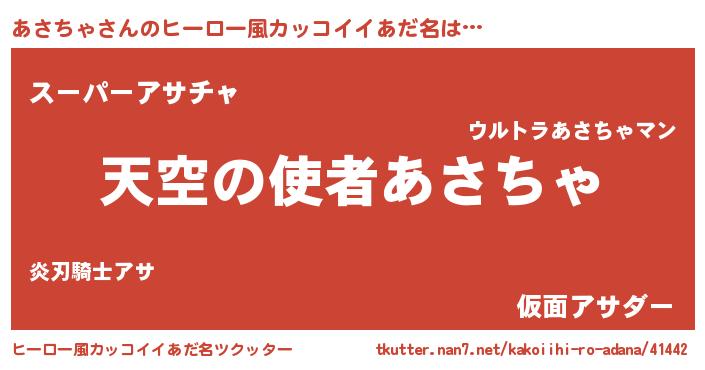 | 男性向けラノベタイトル風あだ名 | 『ノーゲーム・ノーアサチャ』 |