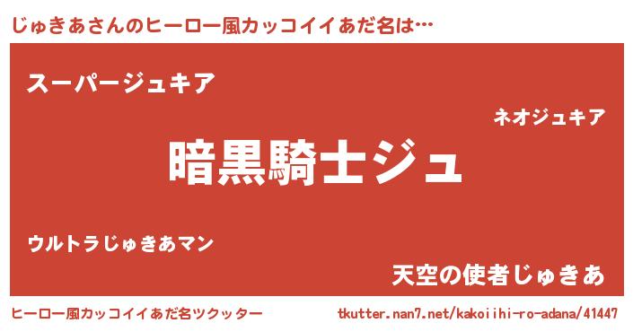 | 男性向けラノベタイトル風あだ名 | 『ダンジョンにじゅきあを求めるのは間違っているだろうか』 |