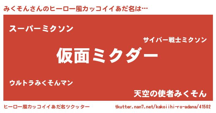みくそんさんのヒーロー風カッコイイあだ名をツクッター!