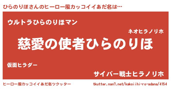 | 男性向けラノベタイトル風あだ名 | 『ノーゲーム・ノーヒラノリホ』 |