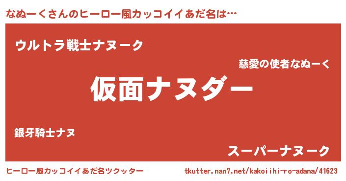 | 男性向けラノベタイトル風あだ名 | 『緋弾のナヌーク』『魔弾の王となぬーく』 |