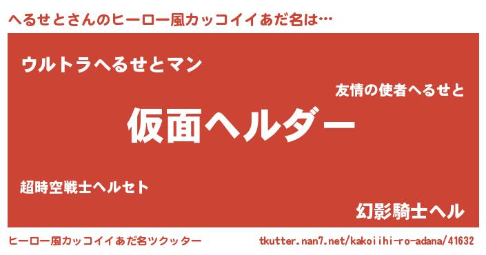 | 男性向けラノベタイトル風あだ名 | 『この素晴らしい世界にへるせとを!』 |
