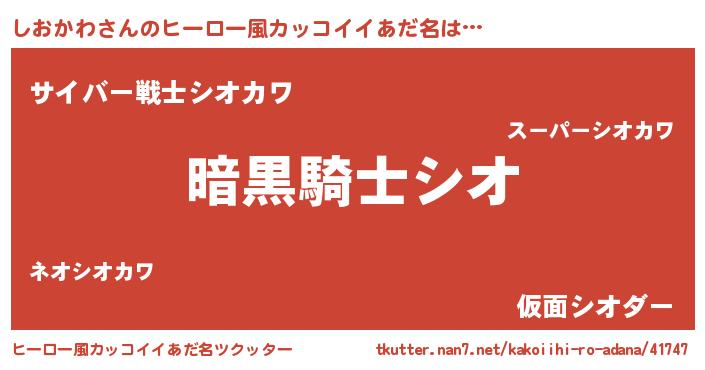| 女子向けラノベタイトル風あだ名 | 『しおかわは平凡を望む』 |