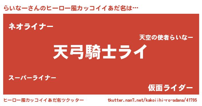 | 男性向けラノベタイトル風あだ名 | 『らいなーに滅ぼされるだけの簡単なお仕事です』 |