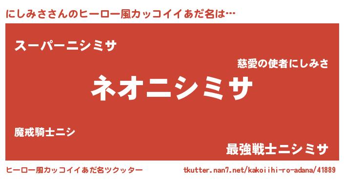 | 女子向けラノベタイトル風あだ名 | 『にしみさの契約王妃』『闇のにしみさ』 |