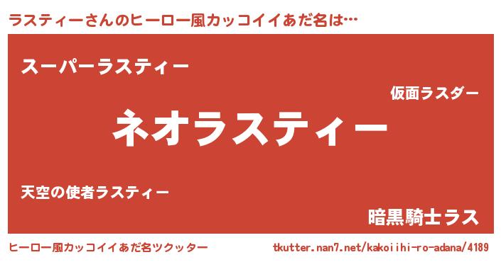 | 男性向けラノベタイトル風あだ名 | 『ラスティーという概念が存在しない退屈な世界 』 |