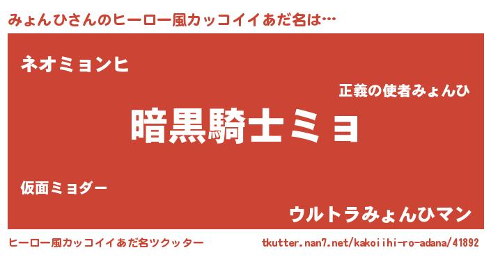 | 胡散臭い通販商品みたいなあだ名 | 『信頼と実績のサプリメント…その名も「みょんひ」』 |
