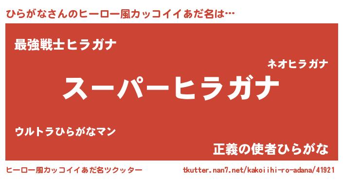 | 男性向けラノベタイトル風あだ名 | 『ヒラガナスレイヤー』 |