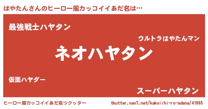 | 男性向けラノベタイトル風あだ名 | 『はやたんという概念が存在しない退屈な世界 』 |