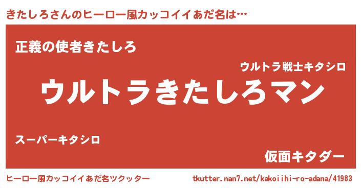 | 男性向けラノベタイトル風あだ名 | 『きたしろに滅ぼされるだけの簡単なお仕事です』 |
