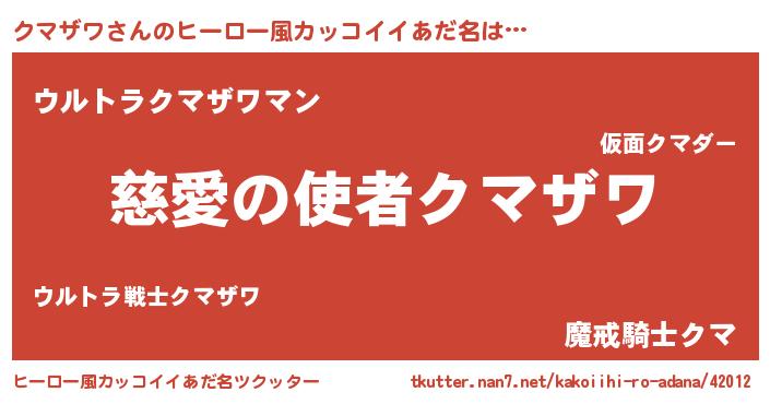 | 女子向けラノベタイトル風あだ名 | 『死神クマザワの再婚』 |