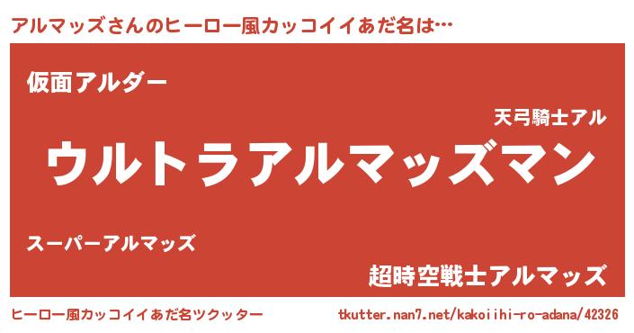 アルマッズさんのヒーロー風カッコイイあだ名をツクッター!