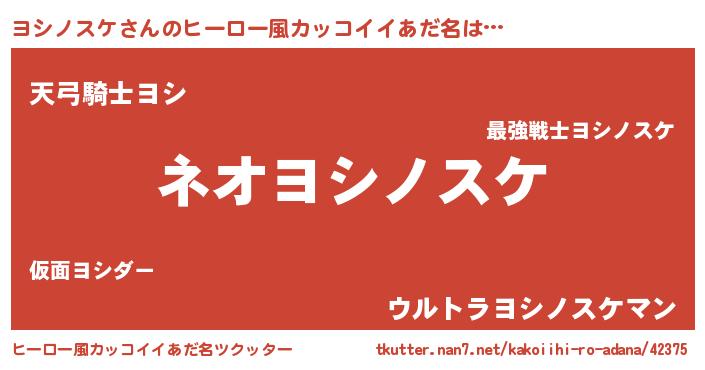 | 胡散臭い通販商品みたいなあだ名 | 『絶対に幸福をもたらす健康食品…その名も「ヨシノスケ」』 |