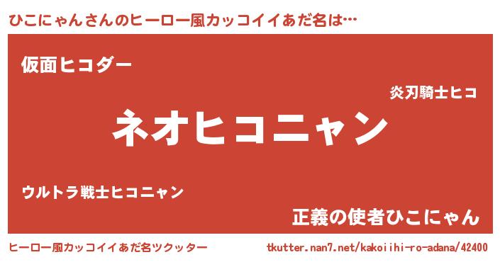| 男性向けラノベタイトル風あだ名 | 『ひこにゃんという概念が存在しない退屈な世界 』 |
